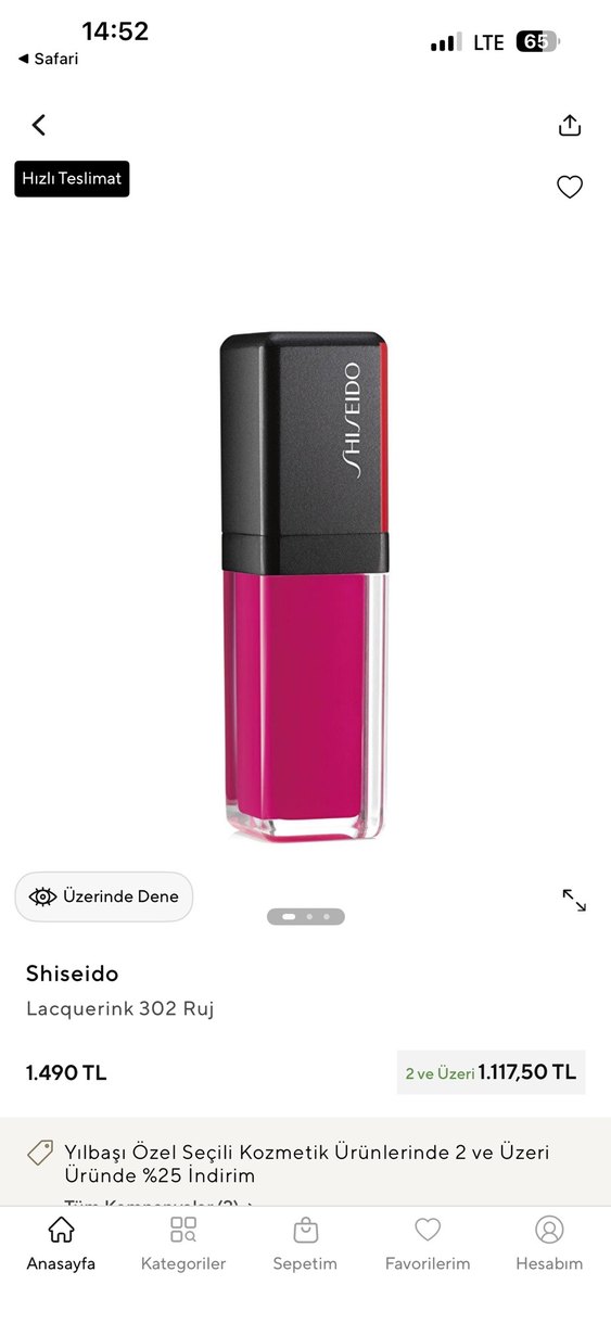 Shiseido Lacquerink 303 koyu pembe renkli, parlak ve canlı bir dudak parlatıcısıdır. Siyah kapaklı şık bir kutuda sunulur. Canada dan geldi orjinal üründür sıfırdır