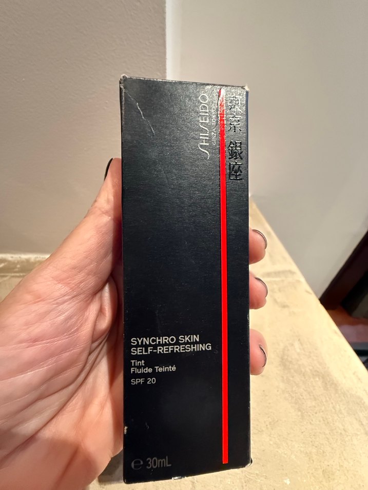 Shiseido Synchro Skin karanlık ton BB krem SPF 20 koruma sağlar, kendini tazeleyen kapatıcılığa sahiptir. 30 mL kırmızı siyah kutuda.