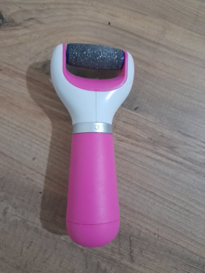 Rahat tutuşlu sapı ve döner aşındırıcı rulosu ile pürüzlü cildi düzeltmek için pembe renkli elektrikli ayak törpüsüdür.Orjinaldir hiç kullanılmadı.