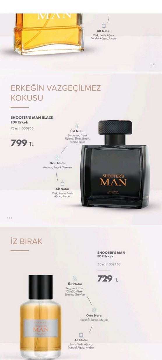 Shooter's Man Black, bergamot, frenk üzümü, elma, limon ve pembe biber üst notalarına sahip erkek parfümüdür. Orta notalarında ananas, paçuli ve yasemin bulunur. Alt notaları misk, yuzu, sedir ağacı ve amberdir. 75 ml koyu renk şişede sunulur.