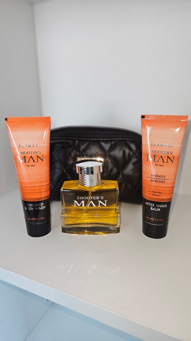 Shooter's Man erkek parfüm seti; parfüm, parfümlü vücut yıkama ve nemlendirici tıraş sonrası balsam içerir. Canlandırıcı ve nemlendiricidir.