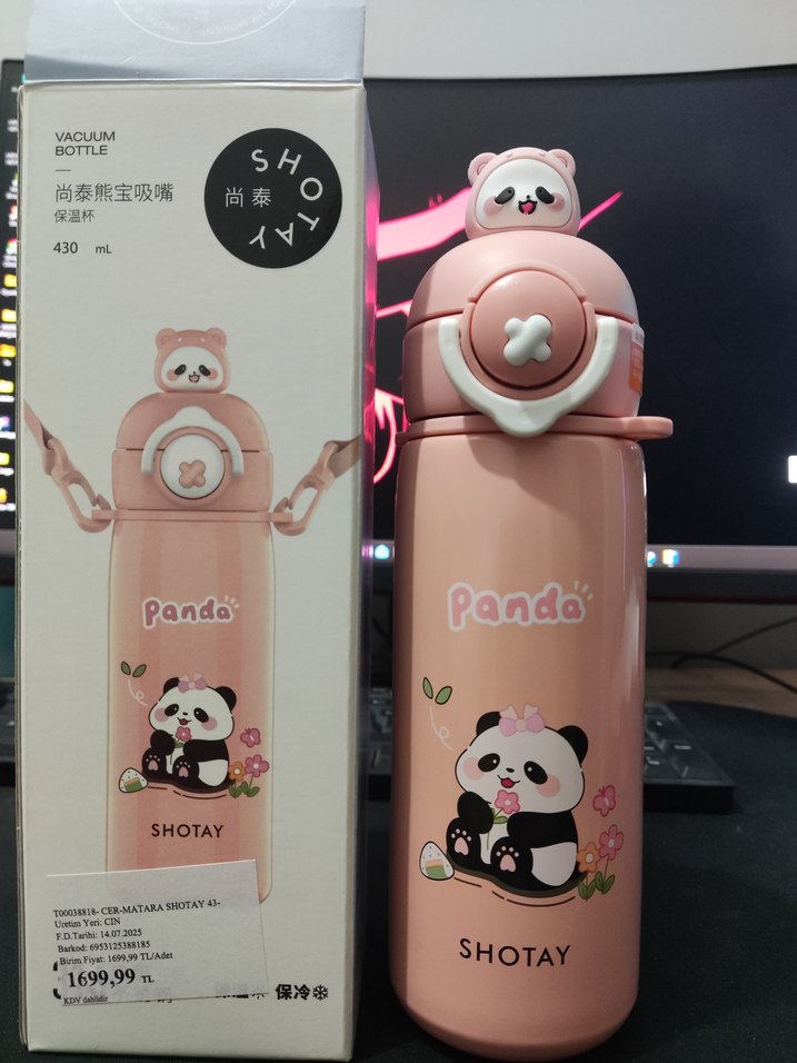 SHOTAY Panda Desenli Pembe Çocuk Termosu 430ml