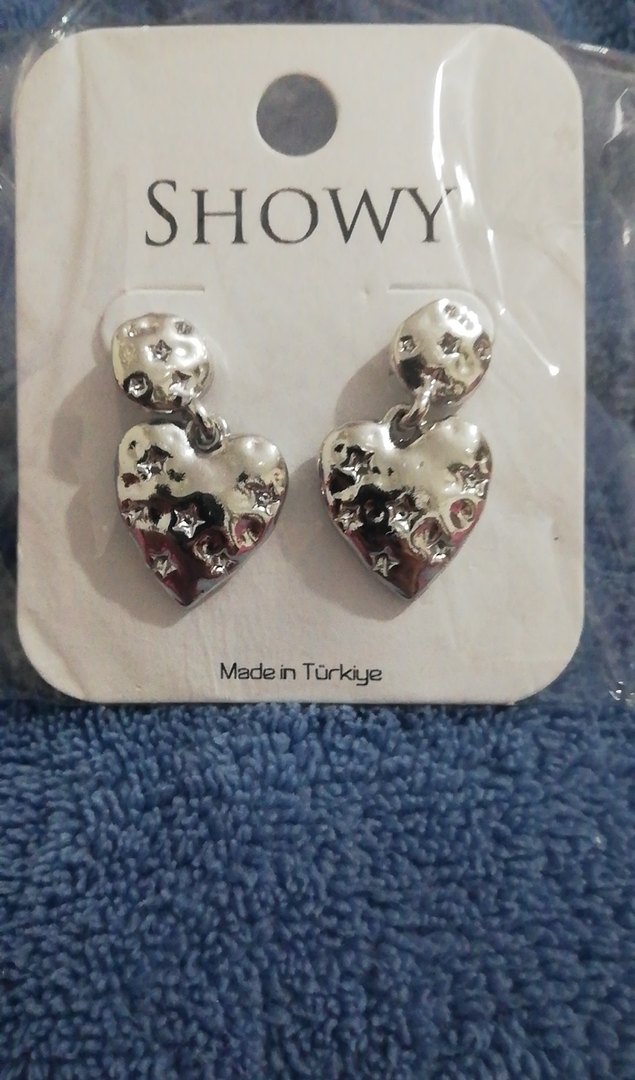 SHOWY Gri minik yıldız detaylı kalpli küpe