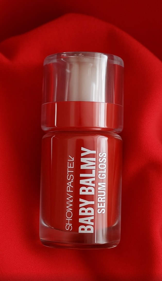 Showy Pastel Baby Balmy Serum Gloss, canlı kırmızı rengi ve parlak bitişi ile dudakları nemlendirir ve pürüzsüz gösterir.
