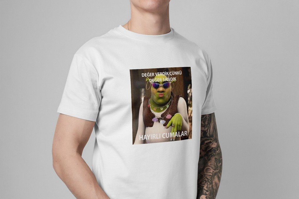 shrek hayırlı cumalar Baskılı Beyaz Tişört