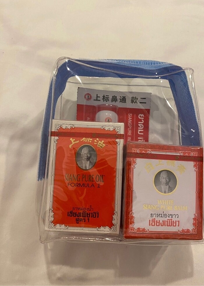 Çanta içeriğinde Balm, inhaler ve yağ mevcut. Ürünler hiçbir şekilde açılmamıştır.