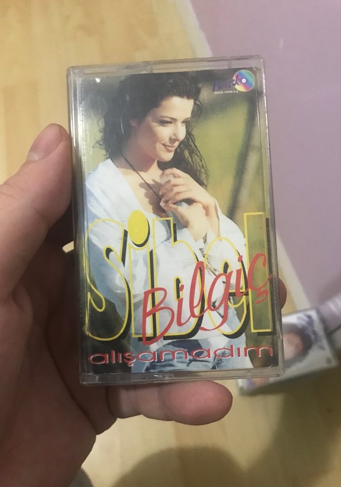 Sibel Bilgiç'in 'Alışamadım' albümünü içeren kaset, orijinal kapak tasarımıyla. Fiziksel müzik kaseti, iyi durumda.