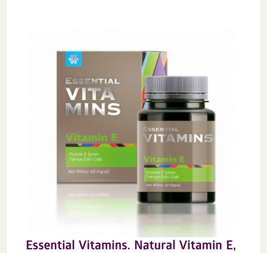 Essential Vitamins Vitamin E takviyesi, 60 kapsüllük şişede doğal vitamin E sağlar ve genel sağlığı destekler.E vitamini, hücrelerin oksidatif stresten korunmasına yardımcı olur. E vitamini, güçlü antioksidan etkileri olan farklı kimyasal bileşikler grubudur. Vücut için hayati öneme sahip olmalarına rağmen vücut tarafından üretilmemektedir. Bu nedenle diyette düzenli olarak E vitamini alımı önemlidir. Bitkisel yağlar ve yeşil yapraklı sebzeler E vitamini içerse de besinlerdeki miktar her zaman günlük ihtiyacı karşılamaya yetmiyor. Bu nedenle takviye edici gıda faydalı olabilir.