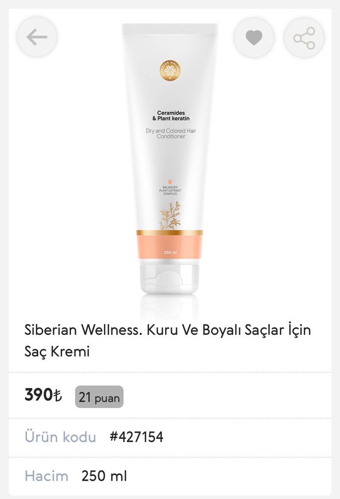 Siberian Wellness, kuru ve boyalı saçlar için seramid ve bitkisel keratin içeren saç kremi. Saçı besler ve güçlendirir, yumuşak dokuludur.
