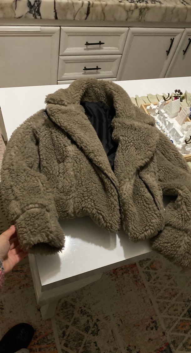 Gri renk peluş kürk hiç kullanılmadı son fiyat kemer hizzasında crop değil zara marka değil temsili