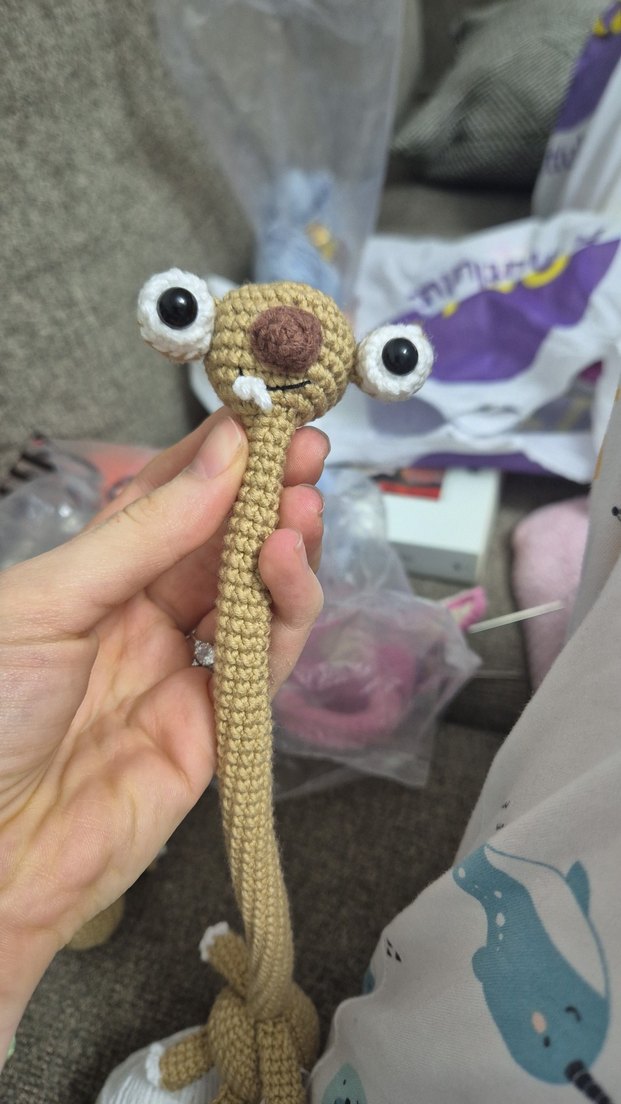 buz devri çizgifilminden sid karakteri çanta - araba süsü asması olarak kullanılabilir. istenen renkte örülür(3-4 gün) tane fiyatı 200 tldir.