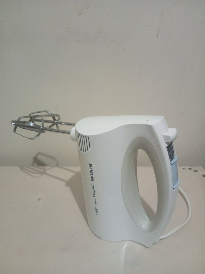 Siemens beyaz mikser, gri çırpıcı uçlarıyla mutfakta karıştırma işlemleri için uygundur. Rahat tutma yeri ve kolay kullanımlı kontrollere sahiptir. orijinal ayakları olmadığı için başka bir ayak takıldı itme aparatı o yüzden tam itmiyor ürün bacaklar yerinden çıkmıyor istenildiği takdirde video gönderilir