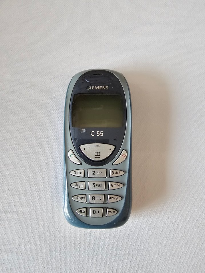 Siemens C55 cep telefonu,basit tuş takımı ve küçük ekranıyla temel iletişim özelliklerine sahiptir.