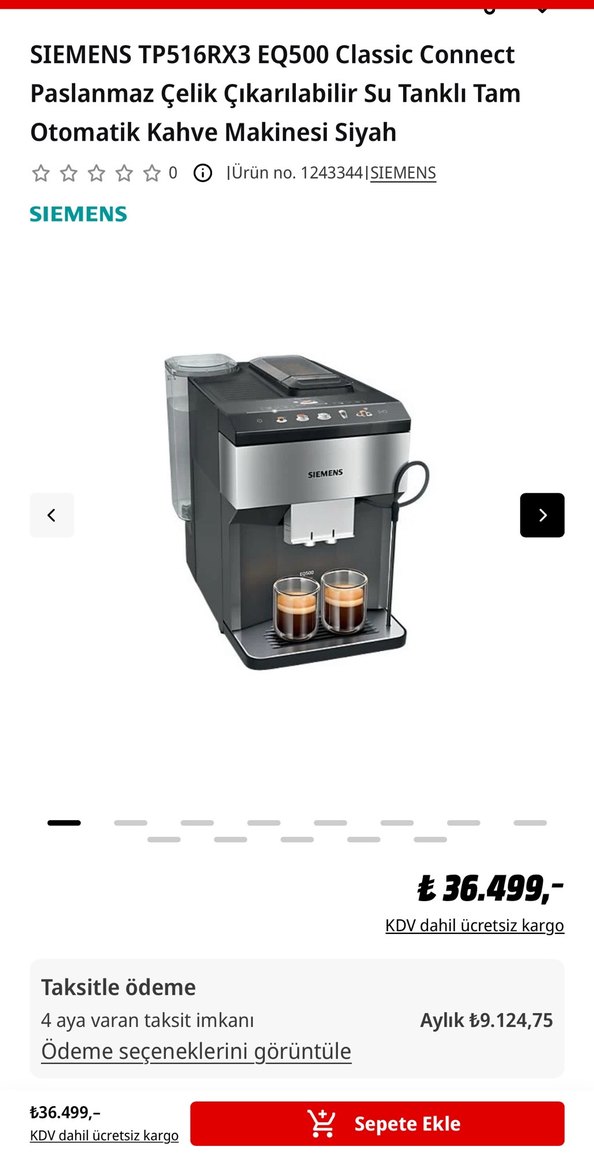 Siemens gri renk kahve makinesi, entegre süt köpürtücü ve çift kahve çıkışı ile kullanımı kolay bir tasarıma sahiptir. ☕