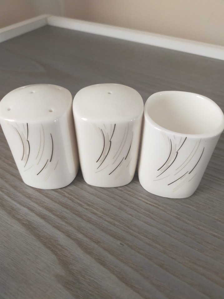1 tuzluk, 1 biberlik ve 1 kürdanlık olarak 3 parçadır. orijinal schafer markadır. hiç kullanılmadı.