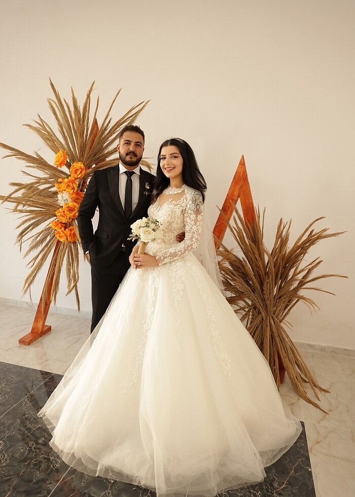 Bu yaz temmuz ayında giydim. Hiçbir yerinde bi sorunu yok çok temiz kullandım. Kuru temizleme yapılmadı alan kişi isterse yaptırabilir bu şekilde bile gayet temiz. Uzun helen model duvağı da mevcut. Sırtı fermuarlı 1.74 boy 63 kilo da giyildi 36-38 bedene rahatlıkla olur. Pazarlık payı vardır.