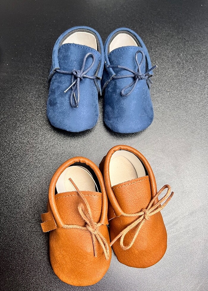 Mavisi kaldı sadece .İkisi de sıfır ürün. Bebeğime almıştım ama çok tombik olduğu için asla ayağına girmedi. Bir kere bile giymeye teşebbüs bile edemedik. İçindeki kalıp kartonuna kadar duruyor. Taban boyunu ölçtüm resimlerde var, 11,5 cm gibi boyu ikisinin de. Alırken 6 ay diye aldım diye biliyorum. Kaç aya olur tam olarak bilmiyorum. Taban ölçüsüne göre ölçüp alırsınız ya da yeni doğunca zaten illa ki olur bebeklere. Tek fiyattır