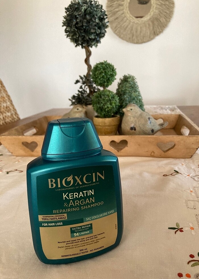 Tüm saç tipleri için bakım sağlayan şampuan. Ürün Faydaları: Bioxcin Keratin & Argan Şampuan; yıpranmış, ışıltısını ve nemini kaybetmiş saçları içeriğindeki hidrolize keratin ve argan yağı ile besler ve nemlendirir. İçeriğindeki Patentli Biocomplex B11 saç dökülmesine karşı yardımcı olur. Parfümden kaynaklı alerjenleri içermez, hipoalerjeniktir. Hassas saçlı derinin kullanımına uygundur. pH’ı, saç ve cilt pH’ı ile uyumludur.