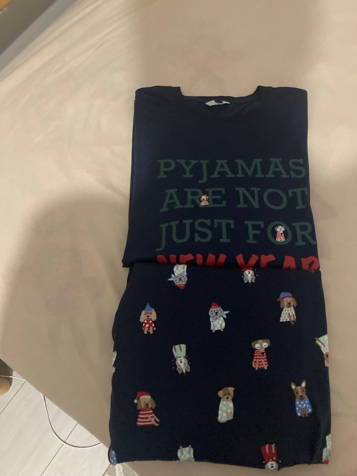 Gece kullanımı için rahat ve bol kesim, çok renkli baskılı, uzun kollu kadın pijama takımı. Üstünde yazı ve küçük karakter desenleri bulunur. Outlet den aldım etiketi kesikti yeni kullanmadı bana büyük geldi