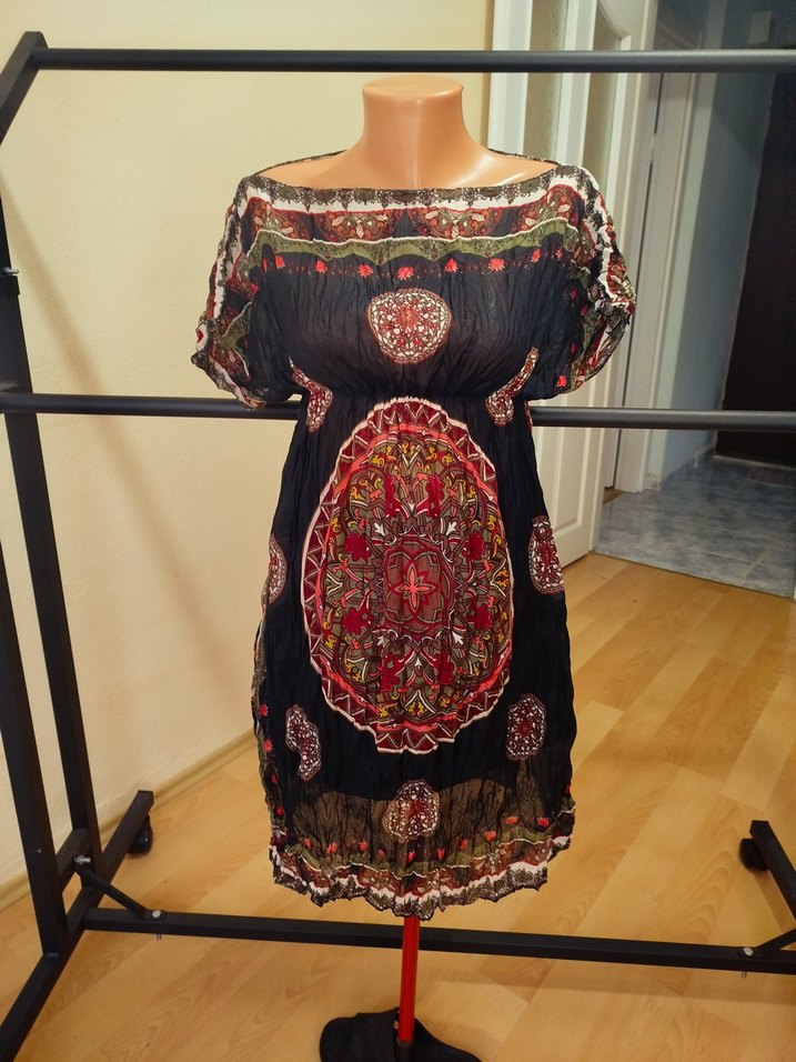 Sıfır çok zarif çok tatlı beli lastikli, yanları yırtmaçlı plaj elbisesi iç gösteriyor mayo veya şortlar ile çok güzel duruyor boy 90 cm iki koltuk arası 40 cm