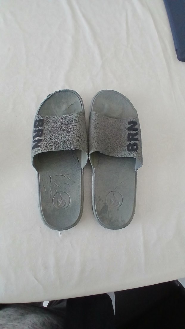 Gri renkli, Velcro bantlı erkek spor terlik. Kauçuk malzemeden, minimalist ve sade sokak giyimi tarzında no.42.