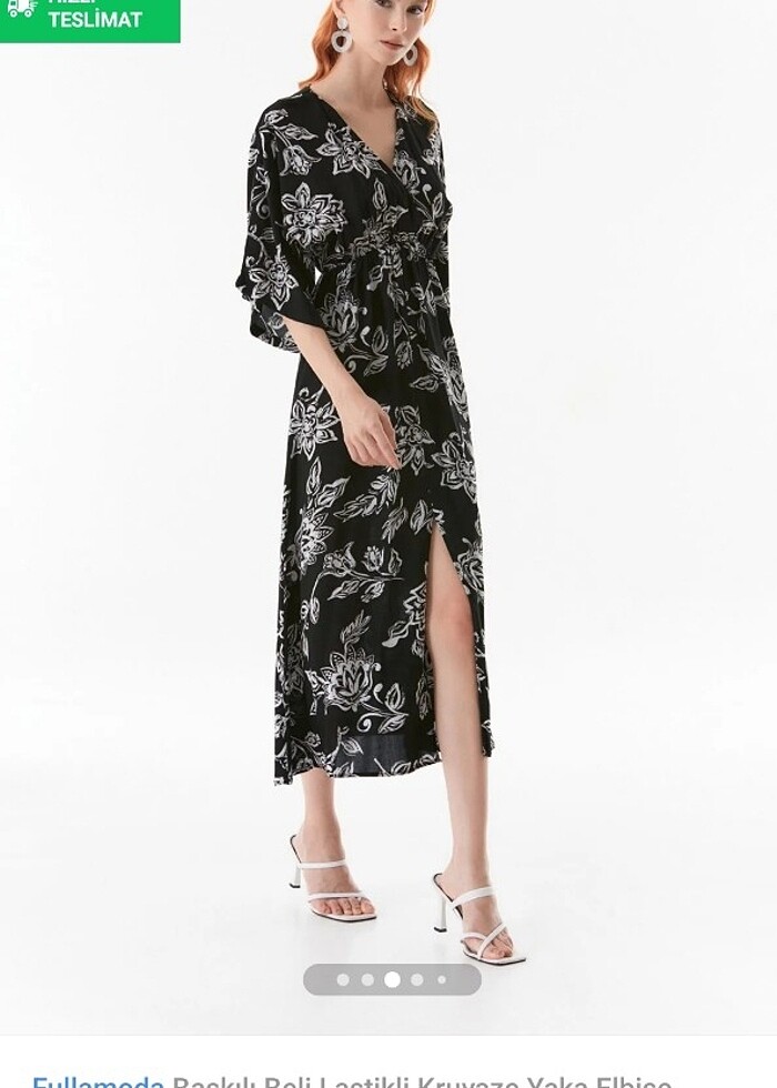Instagramdan neşe dönmez butikten almıştım ama hiç kullanmadım etiketi üstünde yırtmaçlı bir elbise fotoğraflarını ayrıntılı yükledim MARKA TEMSİLİ