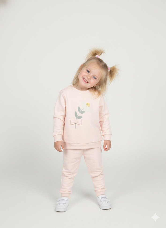 Sıfır Etiketli Papatya İşlemeli Pembe Kız Çocuk Takım 3 Yaş