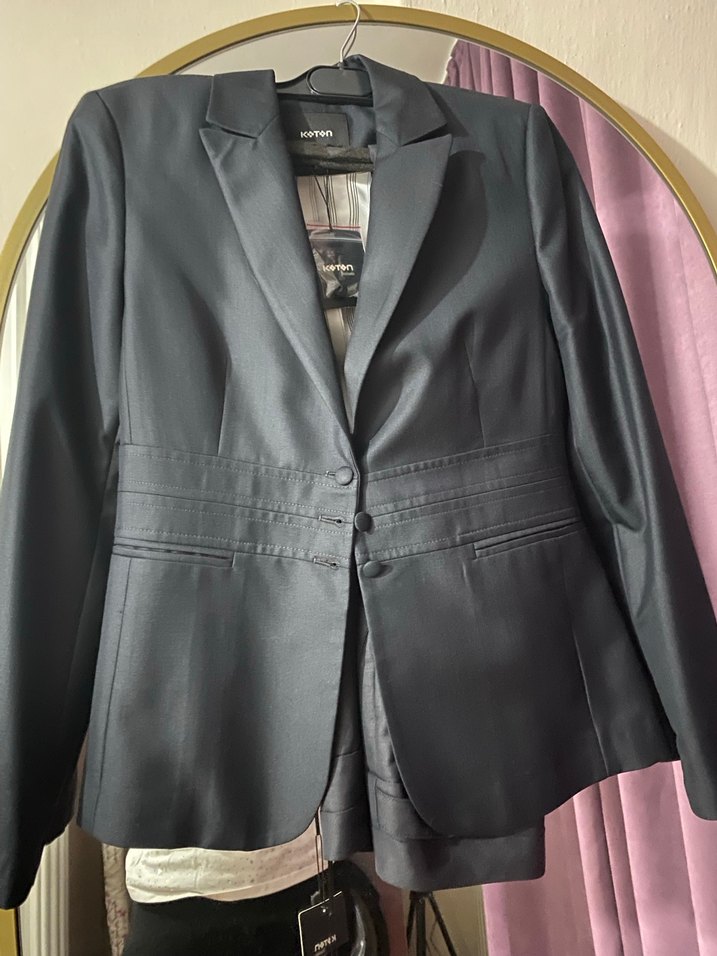 Sıfır etiketli Siyah Düğmeli Kadın Blazer ceket takım