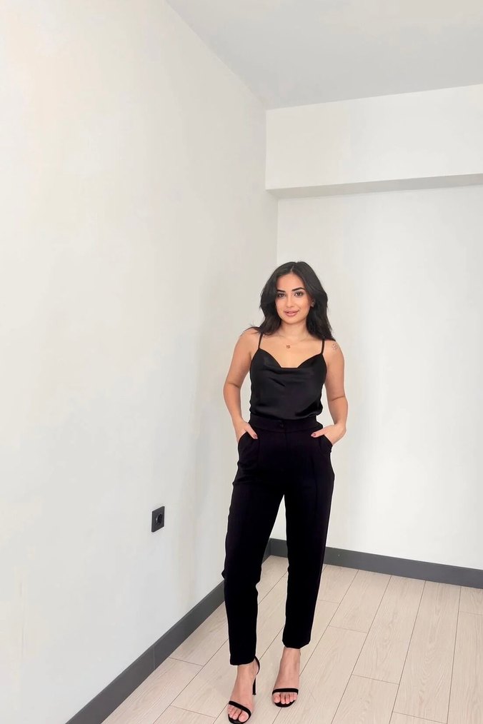 Sıfır Etiketli Siyah Saten Atlet - En Çok Satan Basic Parça
