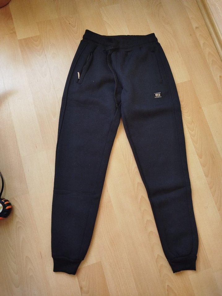 Sıfır gibi bir defa giyildi yanları cepli cepleri fermuarlı, beli lastikli bağlamalı çok kalın pamuklu eşofman alt boy 96 cm bel 35 cm