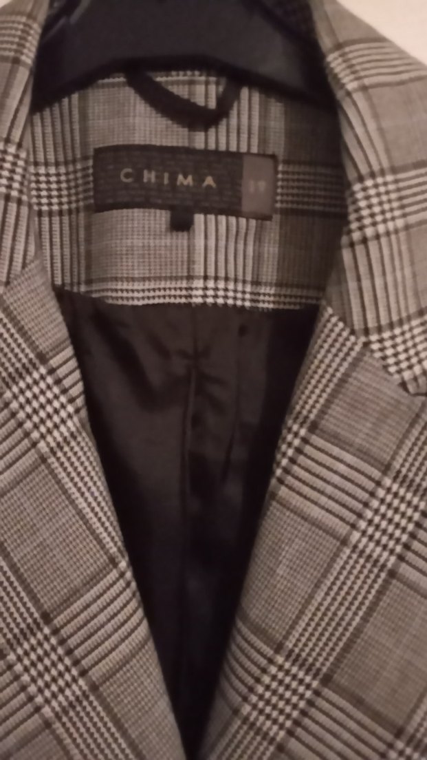 Gri ekose desenli, düğmeli kadın blazer ceket. Uzun kollu, kesimi rahat ve ofis ile günlük kullanıma uygun. Marka: CHIMA.