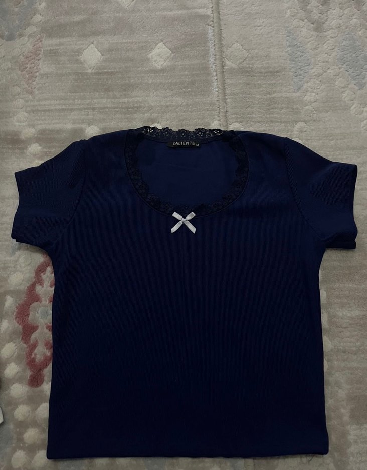 Sıfır hiç kulanılmadı Lacivert Kısa Kollu Basic Kadın Tişört