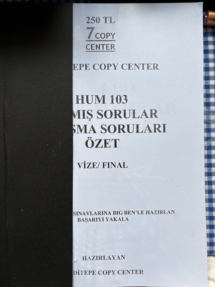Hiç kullanılmadı. HUM103 tarih dersi vize ve final sınav soruları ile özetlerini içeren, Yeditepe Copy Center tarafından hazırlanmış bir kitapçık. Sınavlara hazırlanmak için uygundur.