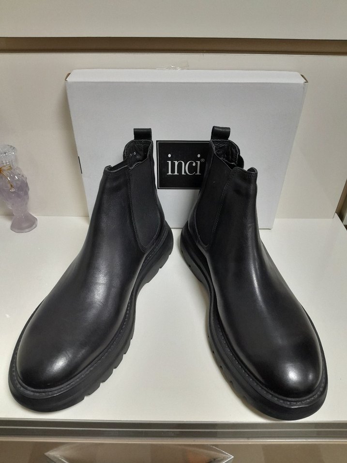 SIFIR KULLANILMAMIŞ ETİKETLİ İNCİ 44 num İÇİ DIŞI HAKİKİ DERİ Siyah renkli, tokalı ve kauçuk malzemeden yapılmış erkek botu. Ofis ve günlük sokak stiline uygun. Marka: inci.