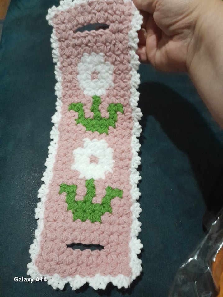 Pastel pembe renkte, beyaz çiçek ve yeşil yaprak desenli yumuşak dokulu banyo süngeri. Kullanımı kolay delikli tutma yerleri bulunur.