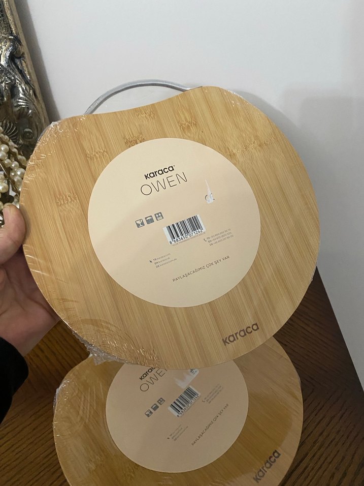 Karaca Owen bambu kesme tahtası, açık renkli ve kullanışlı saplıdır, mutfakta rahat kullanım sağlar.