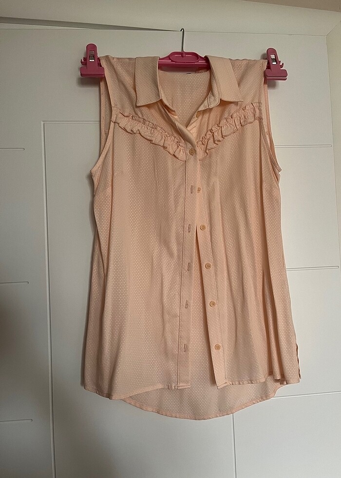 Pudra pembesi kendinden dokulu ve fırfırlı gömlek Hiç giyinilmedi