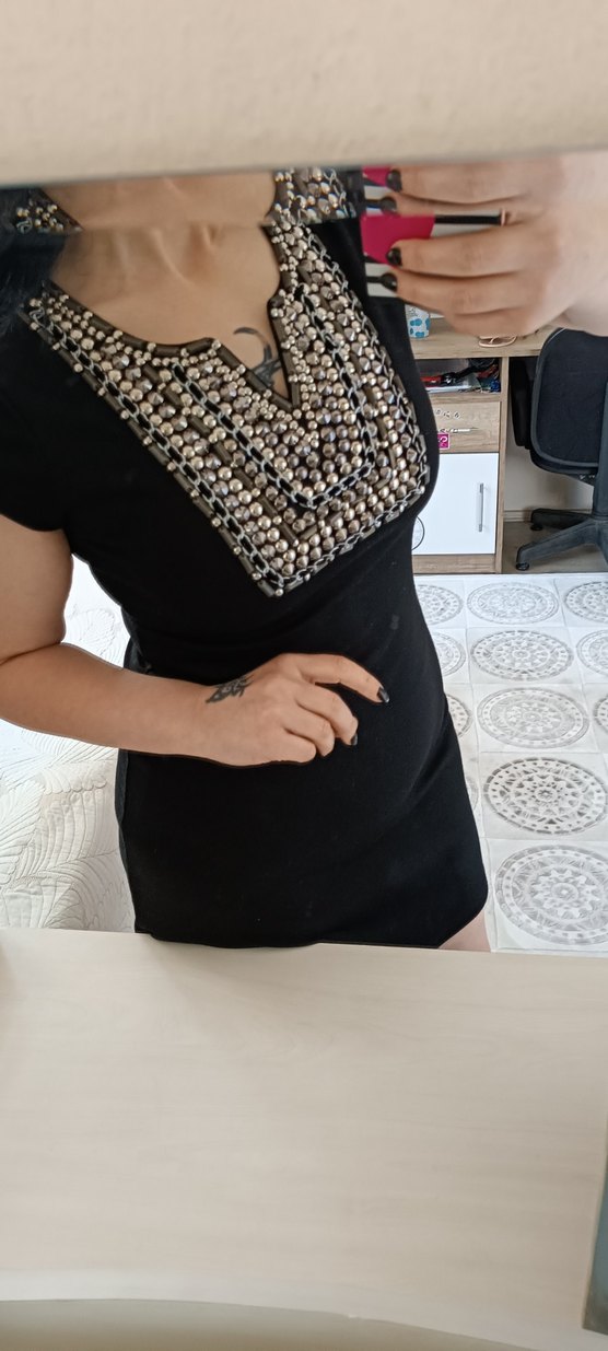 sıfır kol taş detaylı kisa elbise dar kesim tam bedene oturuyo S beden xs de olur #london