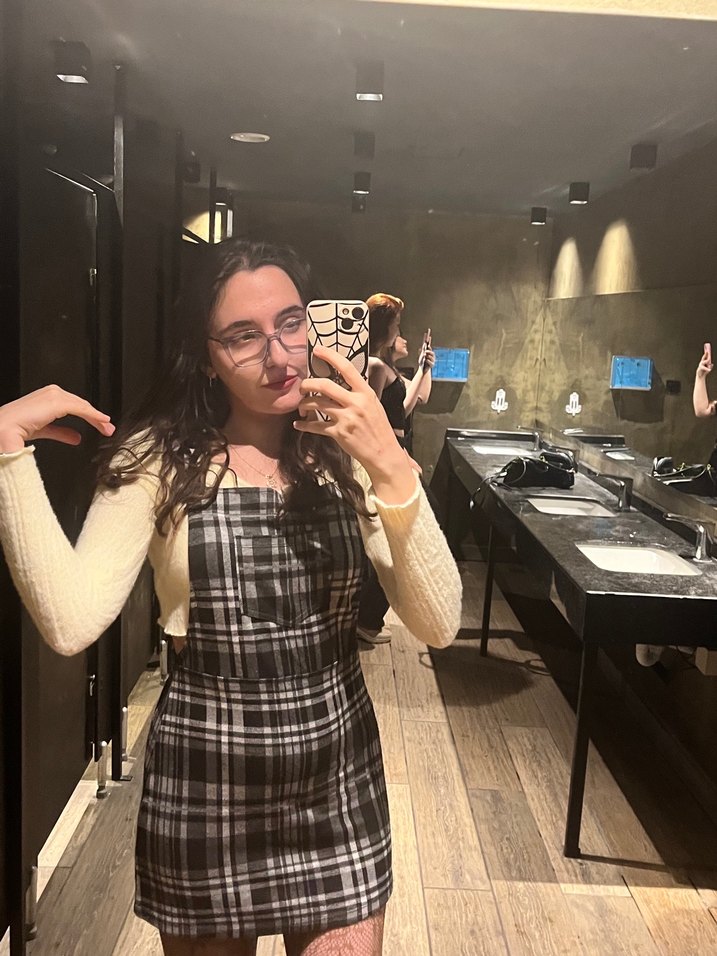 Bu dar kesim midi elbise, kare yaka ve uzun kabarık kollara sahiptir. Siyah ve gri ekose deseni, günlük kullanıma uygun grunge punk tarzı sunar. Cam benzeri materyalden yapılmıştır.