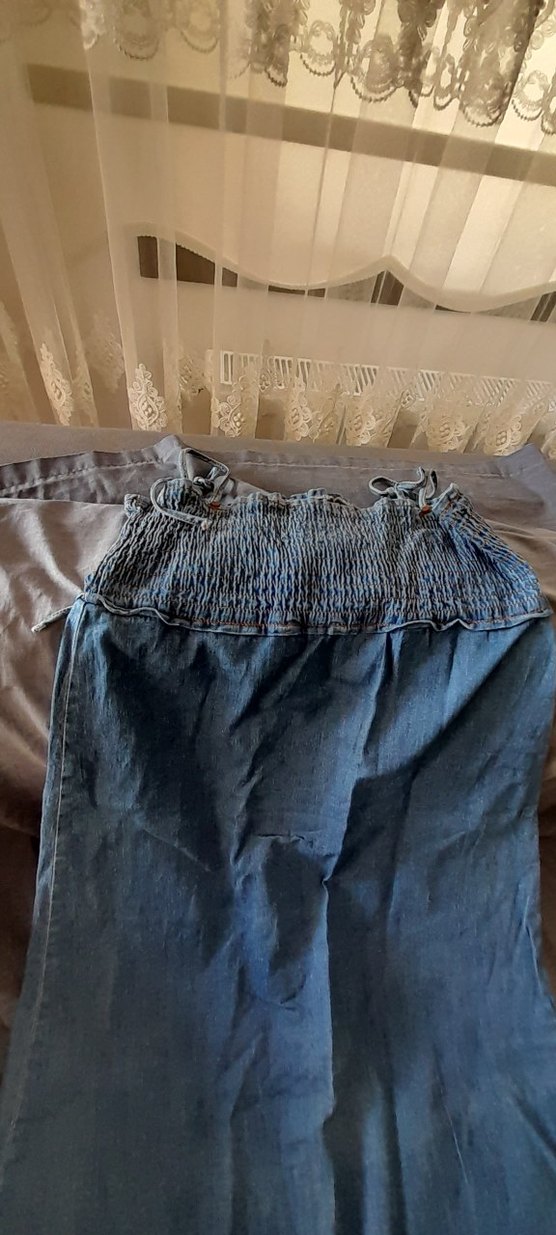 sıfır tertemiz ip askılı uzun kot elbise