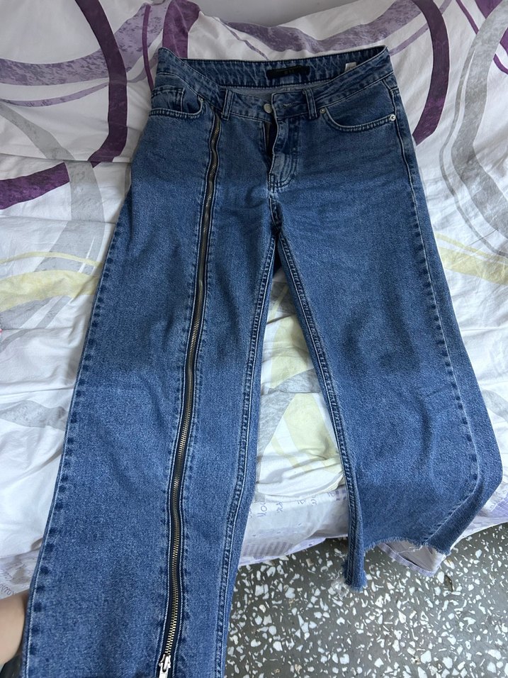 Fermuar detay kot pantolon çok güzel farklı bi model boyu 1.55-1.60lae için daha uygun bel tahmini 37 cm önden