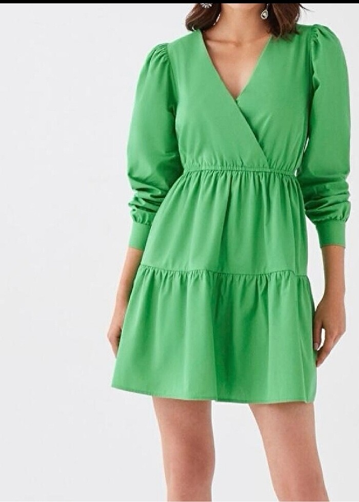SIFIR. Kruvaze Yaka Düz Uzun KolluPoplin Kadın Elbise