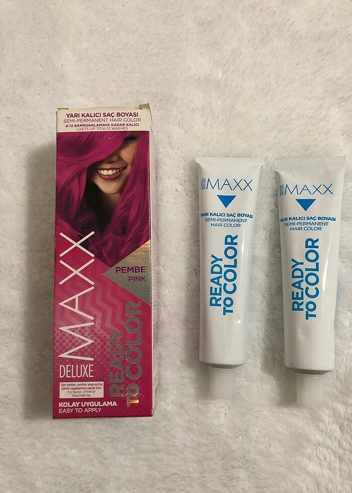 Sıfır kutulu ?. maxx deluxe pembe saç boyası.. 2 tüp boya