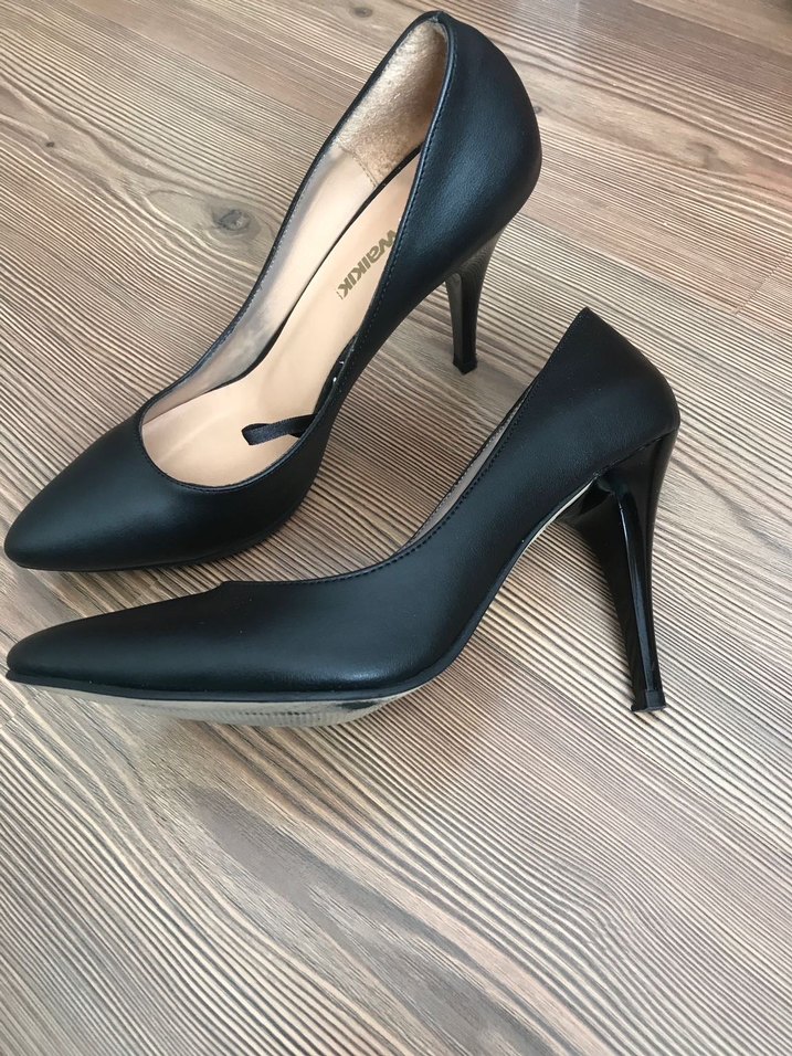 Sıfır üründür.Kullanılmadı .Lc waikiki marka Stiletto siyah deri 38 numara şık bir ayakkabı Siyah renkli, dayanıklı kauçuk malzemeden yapılmış, sivri burunlu modern klasik stilettolar. Ofis ve iş ortamları için zahmetsiz şıklık sunar.