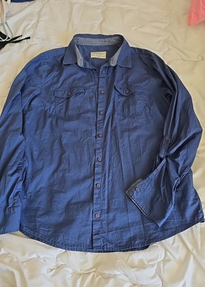 Kullanılmadı bir kez yıkandı dolapta durmaktan dolap kokudu vardı şuan için ne koku ne başka bir problemi yoktur tertemiz likrali koyu mavi gömlek m l uyumludur boy 66 en 51
