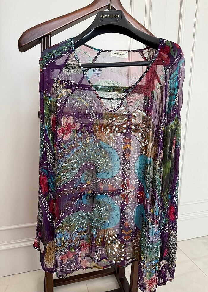 BİR DEFA DAHİ GİYİLMEDİ, İŞLEMELER EL YAPIMI, İPEK KARIŞIMLI ŞIFON BLUZ