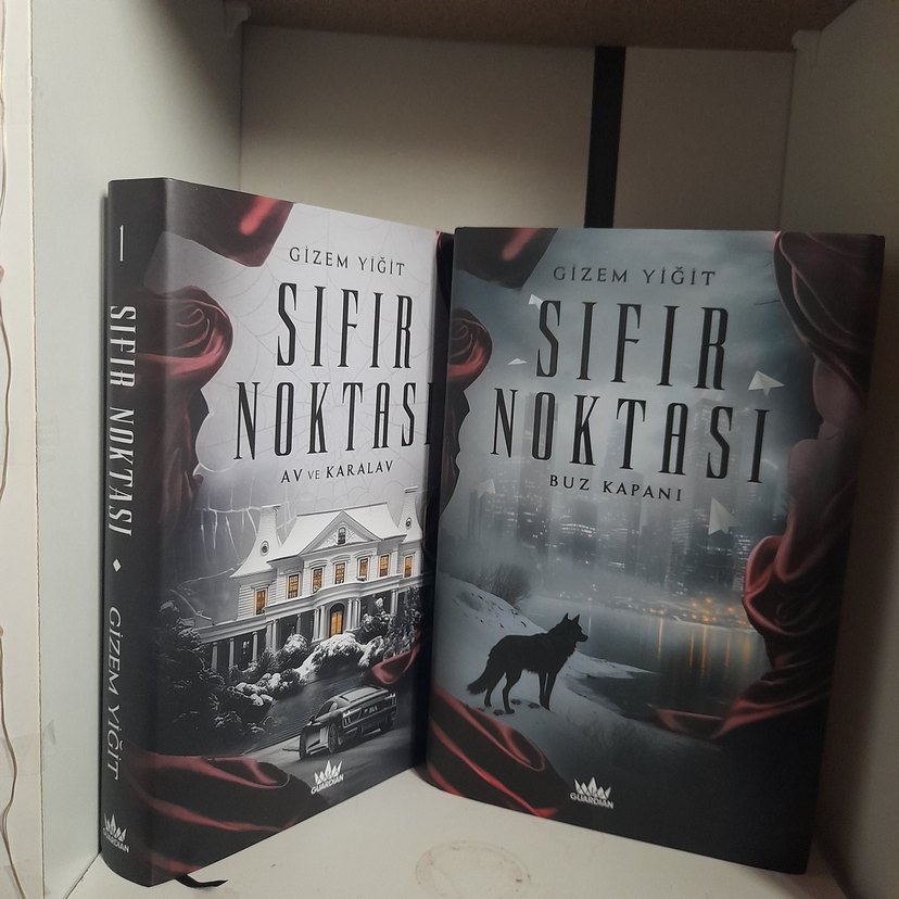 Gizem Yiğit'in 'Sıfır Noktası' serisinden 'Av ve Karalav' ile 'Buz Kapanı' adlı romanlar, karanlık ve gizemli kapak tasarımlarıyla yer alıyor.