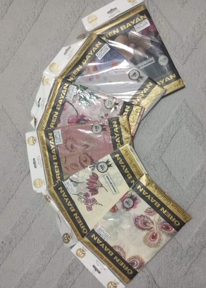 sıfır hiç Kullanılmamış ören bayan marka desenli yazmalar. Görseldeki gibiler. İade ve değişim olayımiz yoktur.