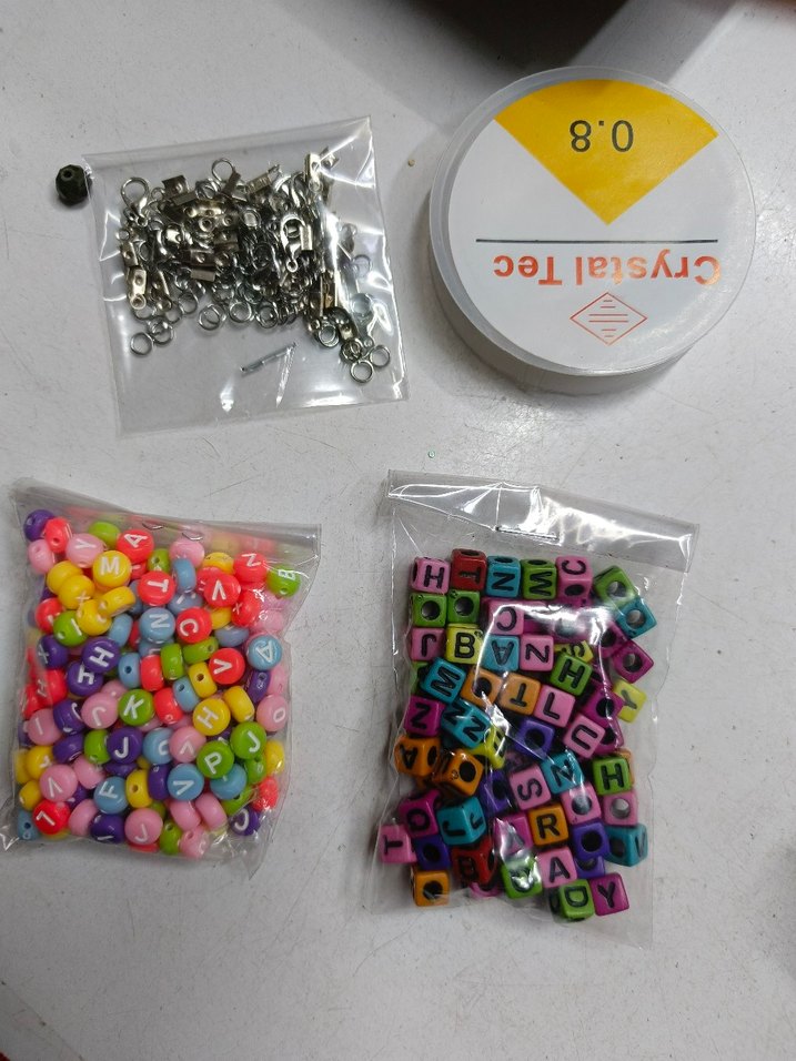 Sıfır paketli Renkli harfli Boncuk Seti misina klips 10 takım