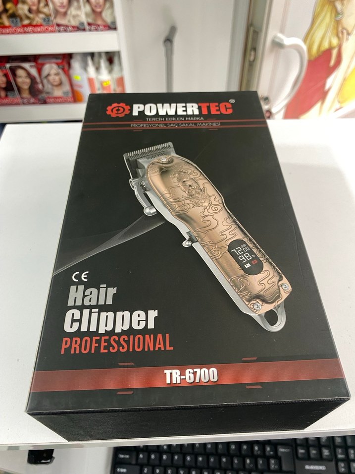 Powertec TR-6700 parlak bej renkte profesyonel saç kesme makinesidir. Ergonomik tasarımı ve net ekranı ile hassas saç kesimi sağlar. ✂️ MODEL TR6700